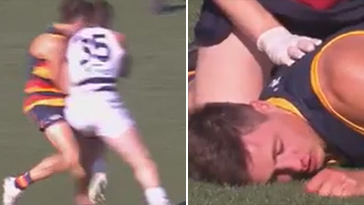 Geelong Cats champion Patrick Dangerfield is set to be scrutinised by the match review officer after knocking out Adelaide Crows defender Jake Kelly in a gruesome bump.
