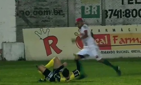 A Brazilian football player was arrested after kicking a referee in the head during a second-division game, knocking him unconscious, authorities said.