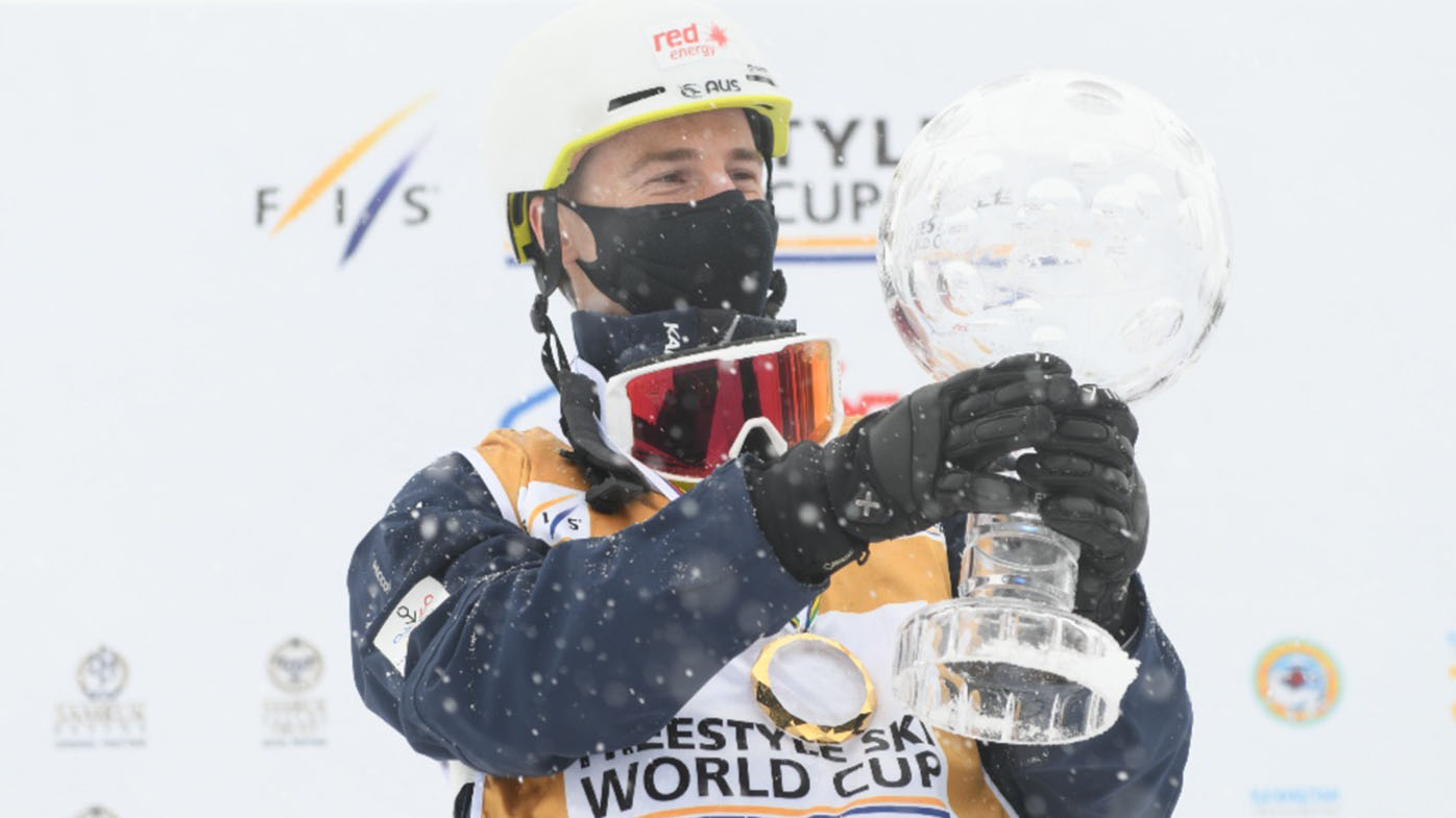 Australia's Matt Graham has won the moguls skiing World Cup title, after the final event in Kazakhstan was cancelled due to poor weather.