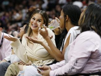 John Legend and Chrissy Teigen’s basketball date night was interrupted on Tuesday evening, when player Dwyane Wade fell on them mid-game.