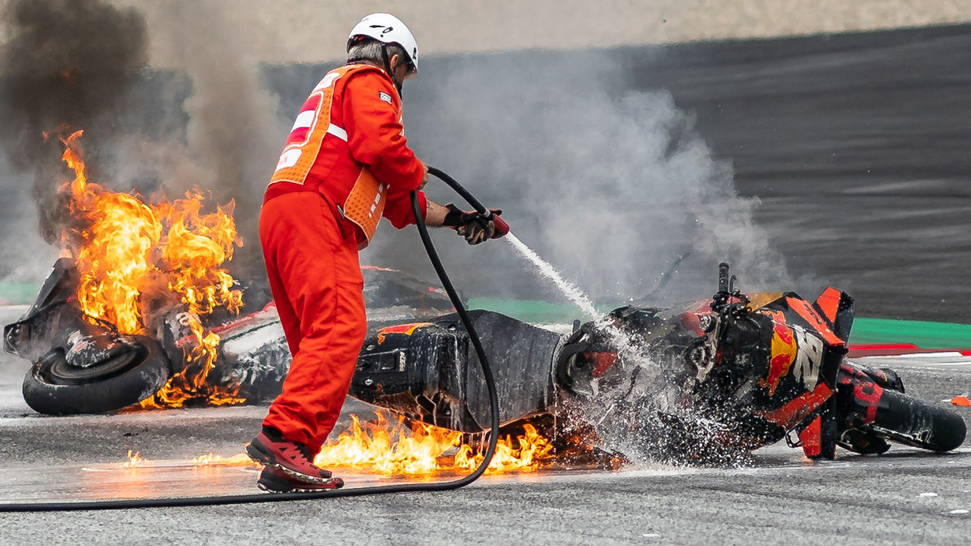 Dani Pedrosa was involved in a fiery crash at the Styrian Grand Prix, his first MotoGP race for nearly three years.