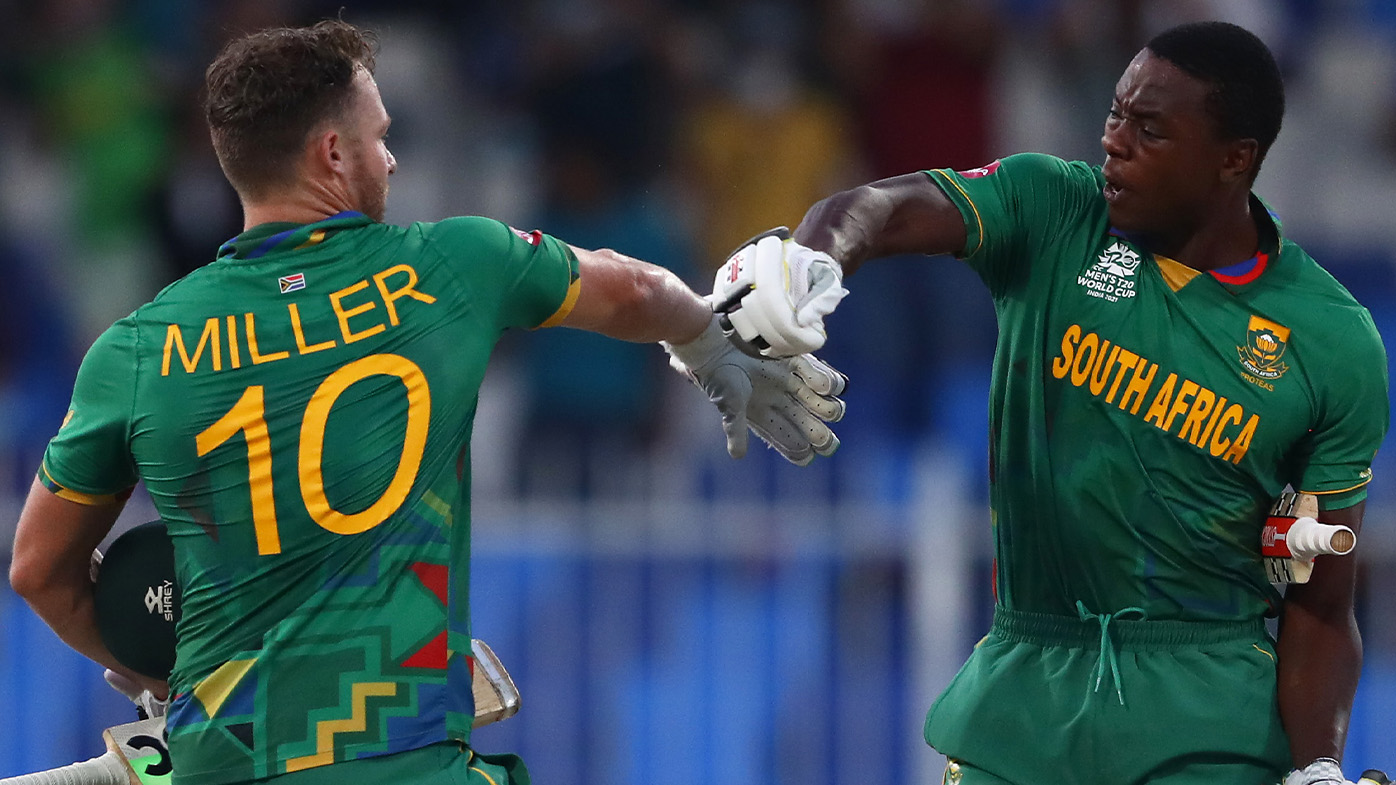 Sri Lanka spinner Wanindu Hasaranga captured just the third hat-trick in T20 World Cup history, but an incredible display of power-hitting defied the heroics as South Africa clinched a pulsating four-wicket win on Saturday night (AEDT).