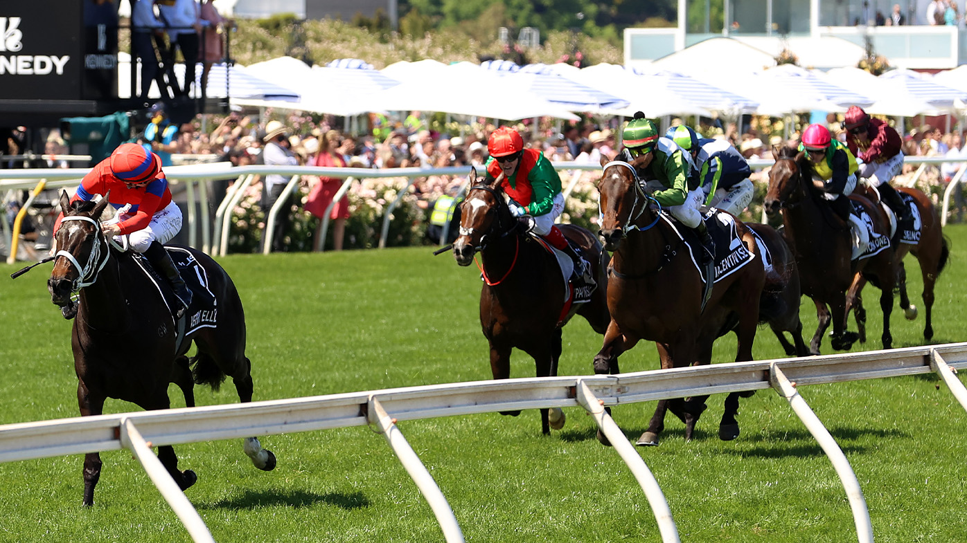 Verry Elleegant has won the 2021 Melbourne Cup, storming home to beat hot favourite Incentivise and Spanish Mission.