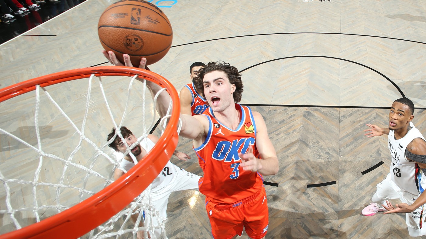 NBA rising star Josh Giddey's superb start to 2023 continued, matching a career high in points as the Thunder saw off the Brooklyn Nets to end their east coast road trip.