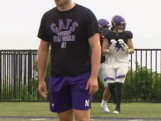 Northwestern coaches, staff wear ‘Cats Against The World’ t-shirts with Fitzgerald’s number at open practice