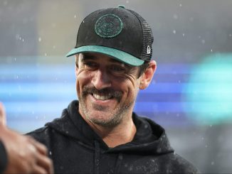 Jets' Aaron Rodgers drops back and puts weight on injured leg during warmups before game vs Giants October 29, 2023 admin 0