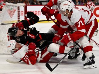 Lightweight champion Islam Makhachev watched featherweight champion Alexander Volkanovski enter the octagon inside Etihad Arena on Yas Island in Abu Dhabi to the 1981 hit “Land Down Under” by Australian band Men At Work.