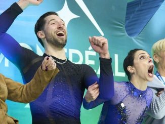 Her and partner Maxime Deschamps just captured gold in Montreal. She had previously retired in 2001 and returned to competition in 2016.