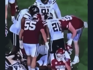 He plays for the Arkansas Razor Backs and here he is seen purposely stepping on another players ankle