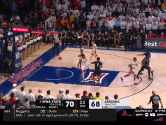 University of Arizona’s Caleb Love drains a beyond halfcourt heave to tie #2 Iowa State at the end of regulation. Arizona would win in OT January 28, 2025 admin 0