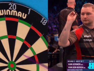 Dimitri van den Bergh hits 9 darter on his way to beat Micheal van gerwen to reach the masters quarter finals February 1, 2025 admin 0