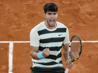 Carlos Alcaraz rallied from two sets down and saved three match points to beat Jannik Sinner 4-6, 6-7(4), 6-4, 7-6(3), 7-6(10-2) on Monday morning and retain his Roland-Garros title for a second straight year.