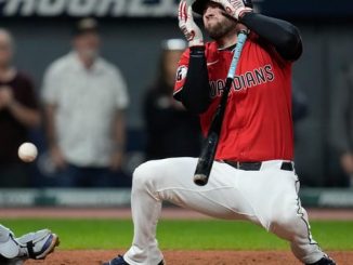 Cleveland Guardians designated hitter David Fry sustained a broken nose and facial fractures after he was hit in the face by a pitch from Detroit’s Tarik Skubal in the sixth inning of Cleveland’s 5-2 win over the Tigers, a victory that deadlocked the AL Central division race.