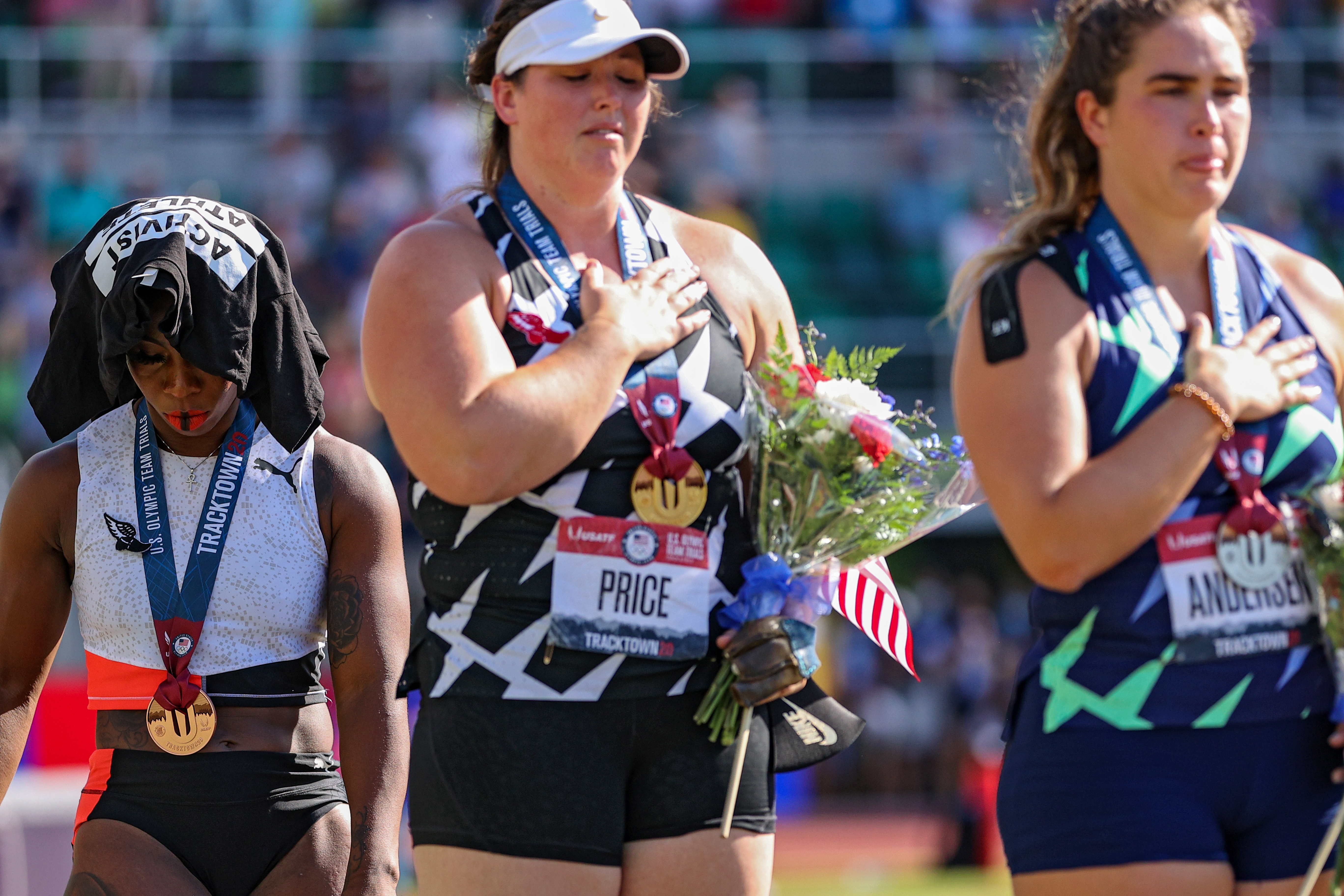 Berry, the American hammer thrower who triggered much of this debate, has said she intends to use her Olympic platform to point out racial inequality in the United States. She turned away from the flag when the national anthem played while she was on the medals stand at the Olympic trials last month.