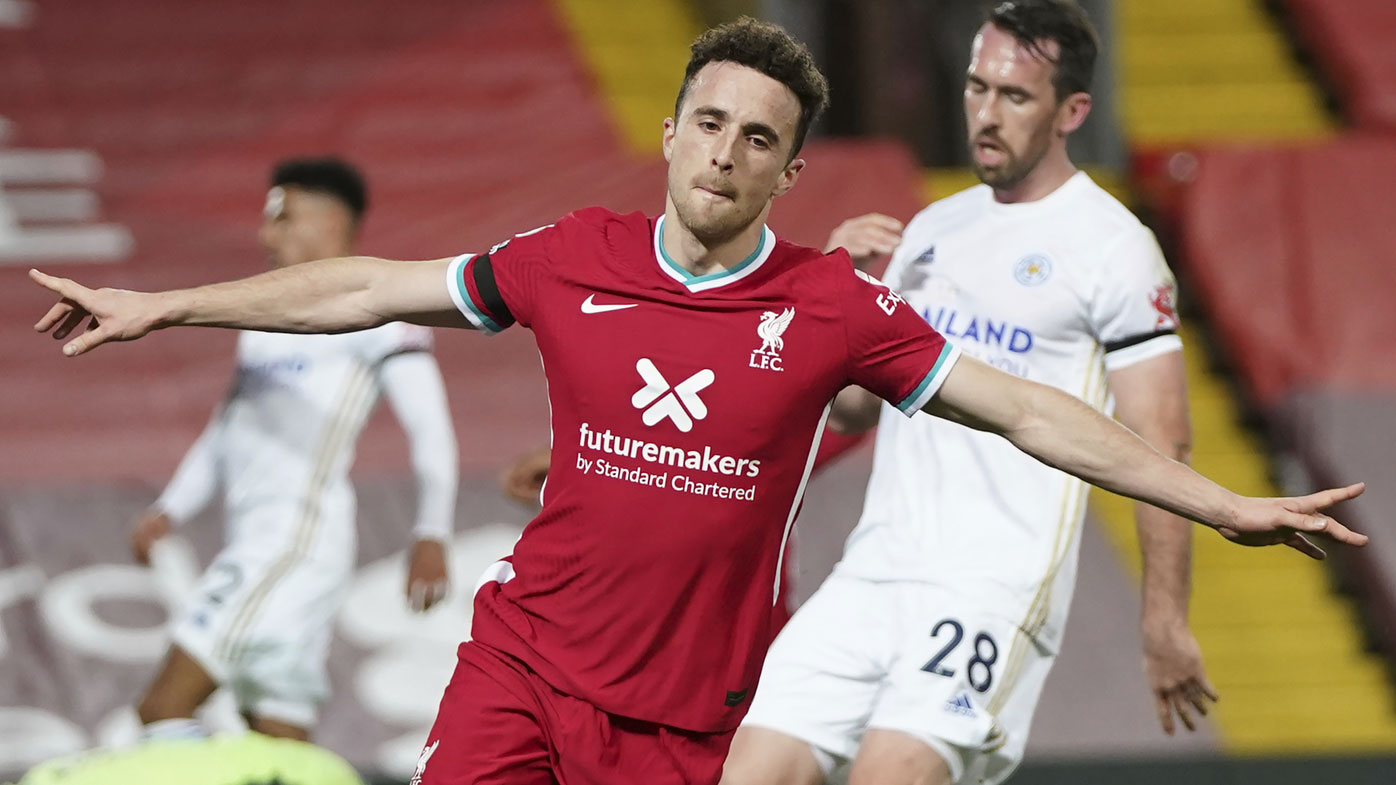 Leicester, coached by former Liverpool manager Brendan Rodgers, had won all four of its away games this season but was two goals down by halftime following an own-goal by Jonny Evans in the 21st minute and a glancing header by Diogo Jota in the 41st.
