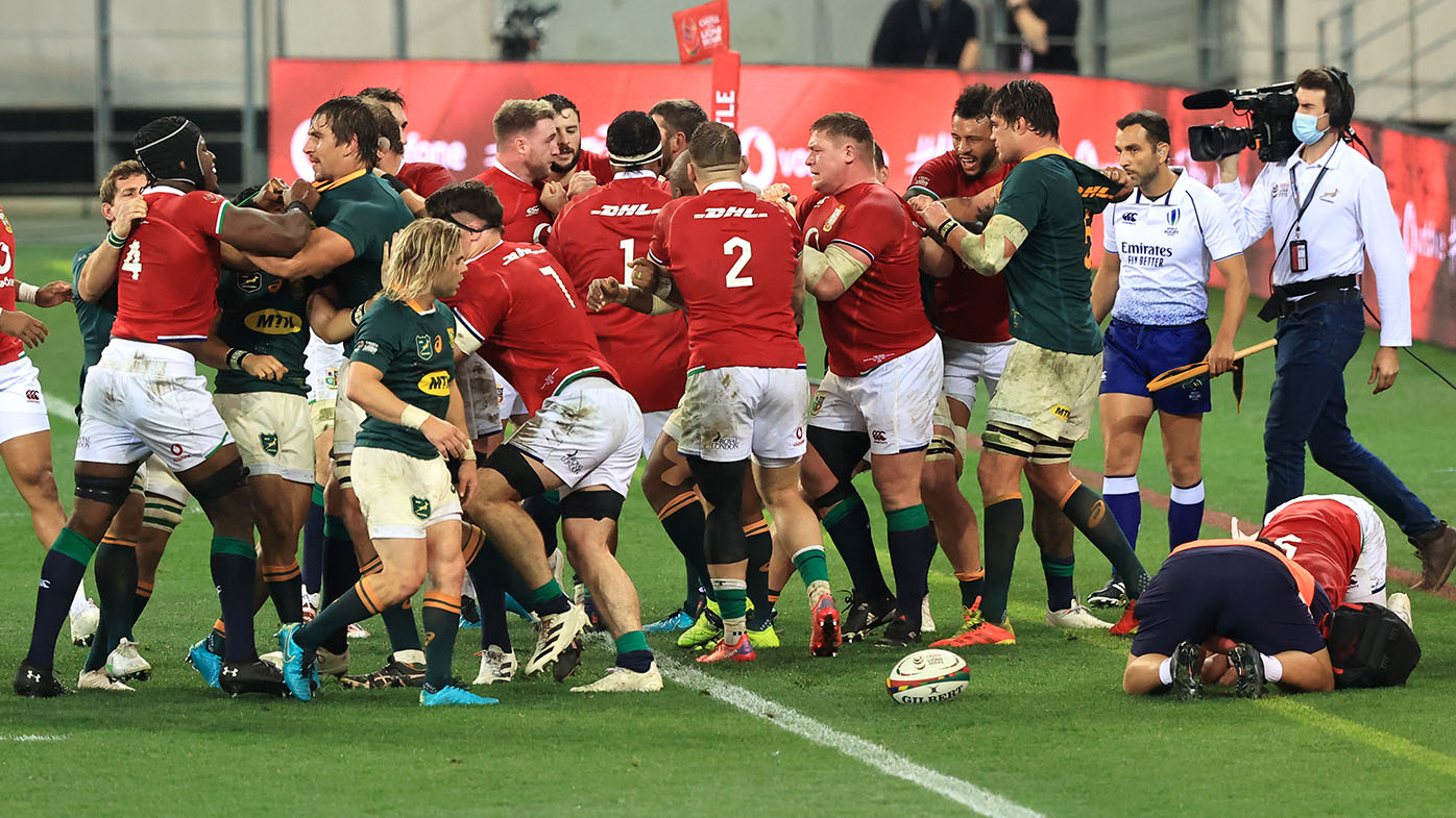 The build-up was overshadowed by concerted South African attacks on the first Test refereeing, but the hosts could have little to quibble about new ref Ben O'Keeffe. He warned both sides as early as the third minute after the first scuffle, and showed he meant it with yellow cards to each team.