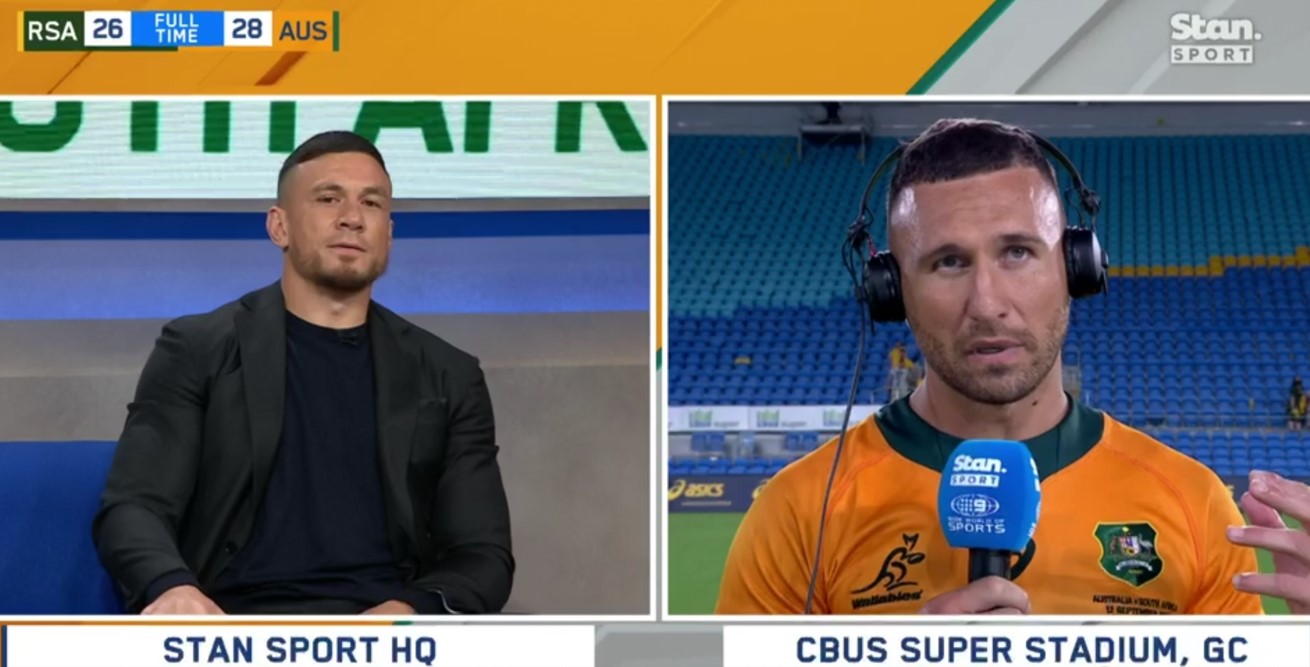 Quade Cooper paid an emotional tribute to Sonny Bill Williams on live television after kicking a clutch game-winner to seal a fairytale Wallabies comeback after four years in the Test wilderness.