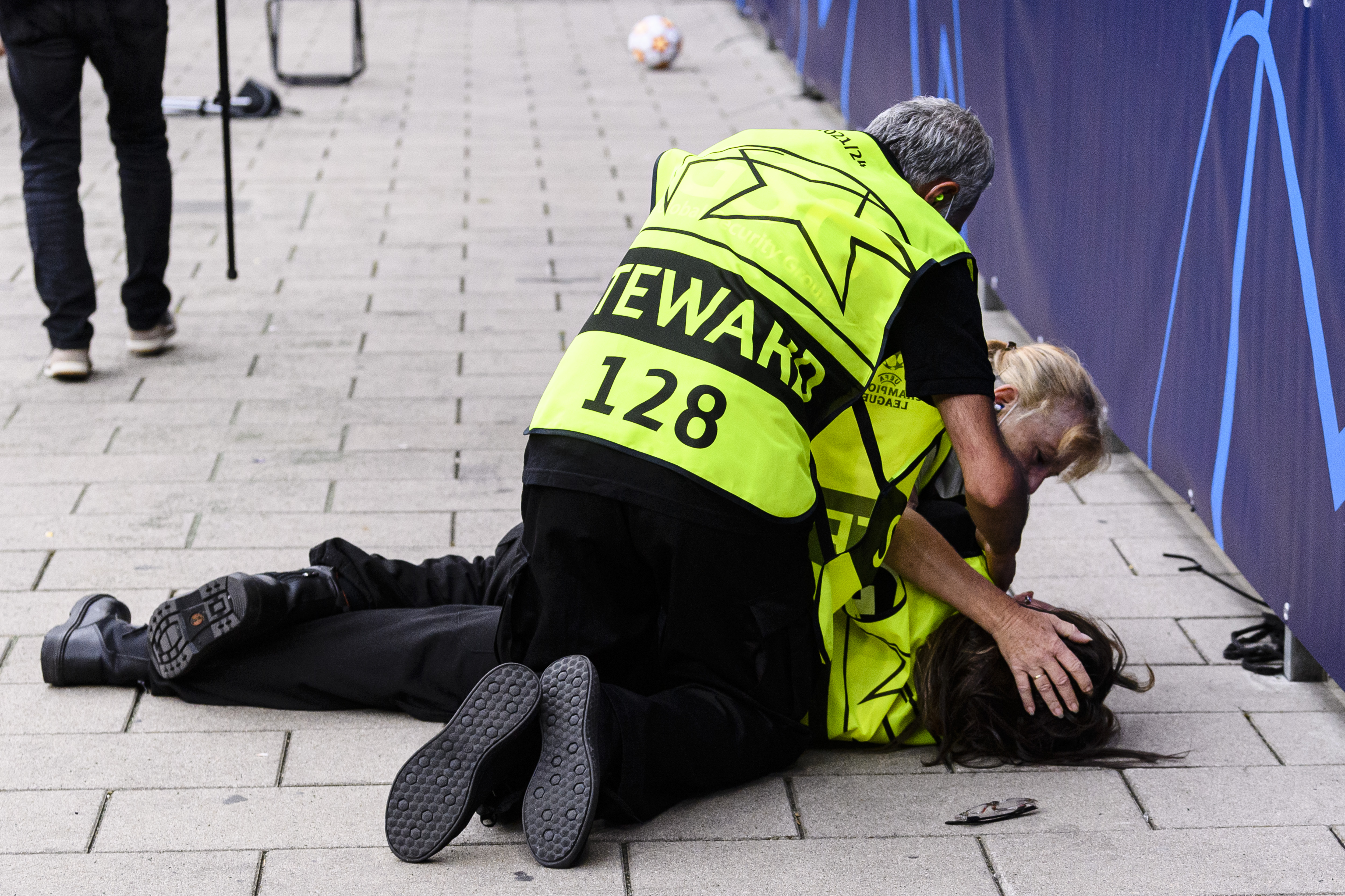 A huddle formed around the steward as Ronaldo expressed his concern before gaining assurance the injuries weren't serious.