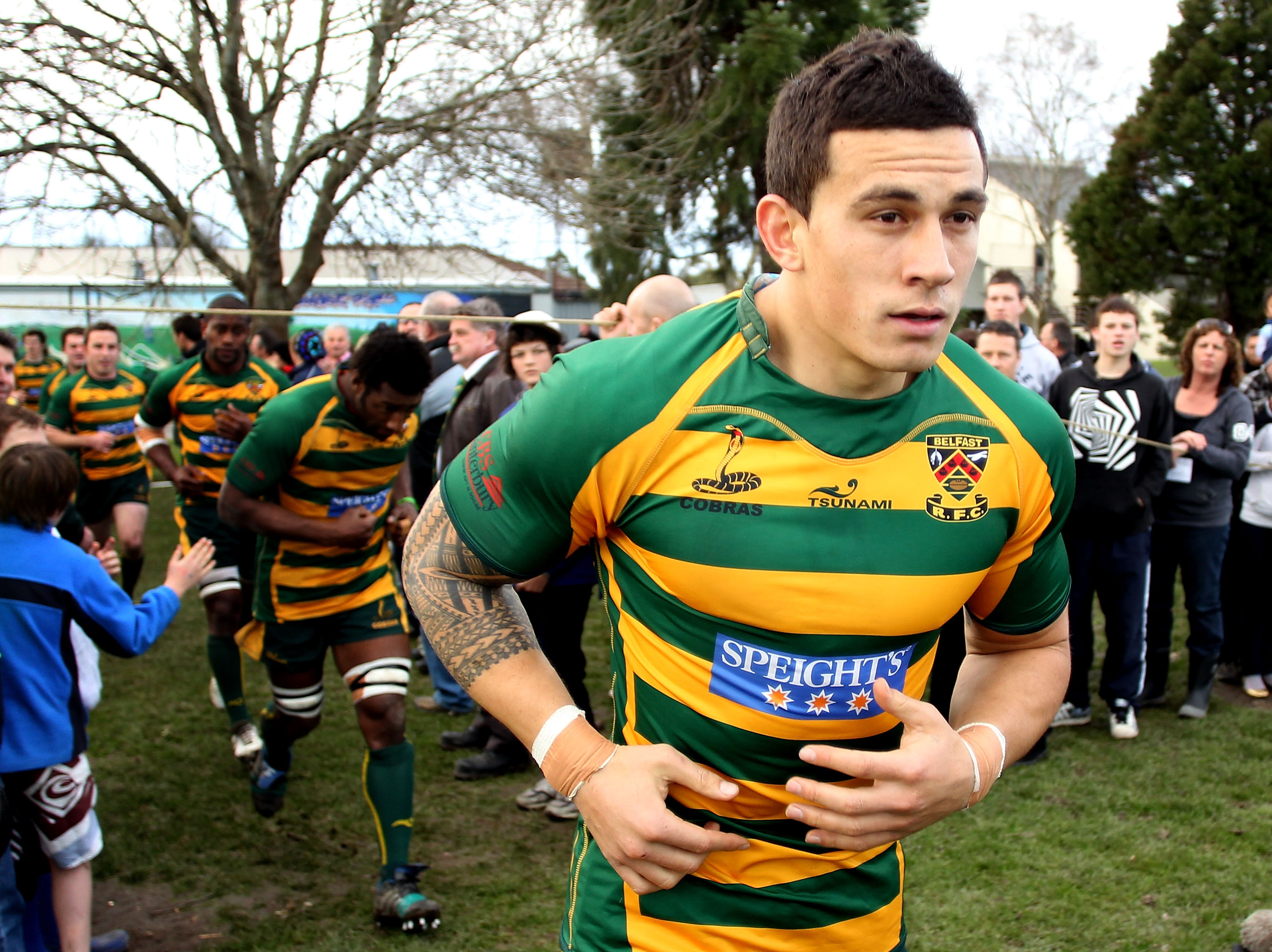 My first match there was for a local club, Belfast, where I met Bill Bush, the legendary Māori prop and All Blacks enforcer. He was so welcoming to me. My presence drew a massive crowd for a club match; I think around 4000 people. Stats show I made thirteen offloads, twenty-one carries and scored a try in my fifty-minute appearance. It was nice to be back among ordinary folk, where I feel most comfortable.