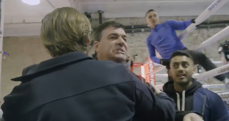"Kambosos, you're gonna get your ass kicked," Teofimo Sr. screamed when he entered the gym as Kambosos was being interviewed. "First round baby," he continued.