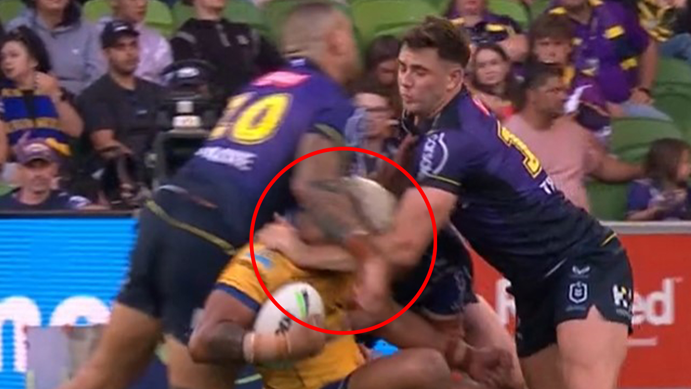 The two-metre tall prop wound up a closed fist and swung it into the head of Eels player Makahesi Makatoa, who was carrying the ball.