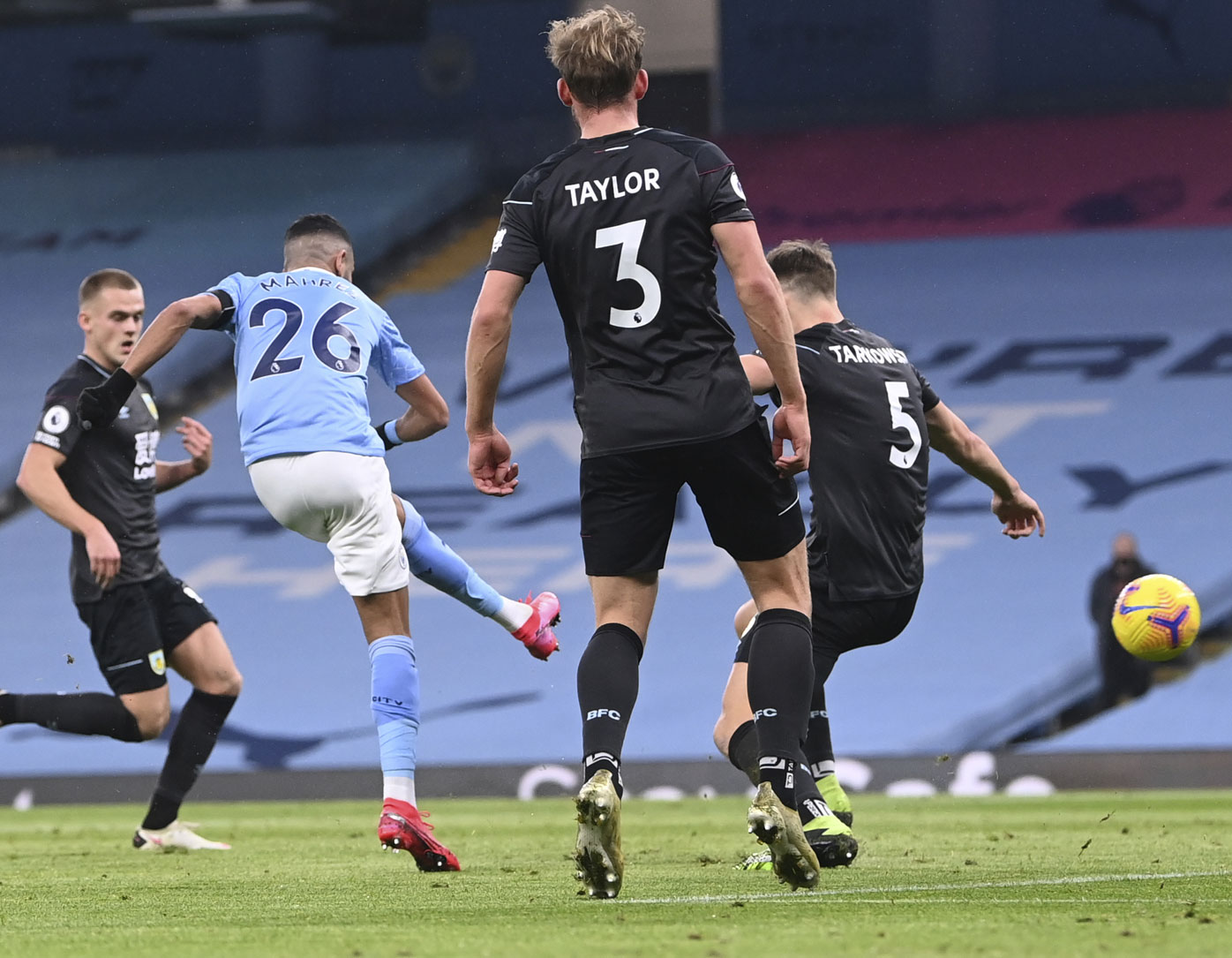 Riyad Mahrez scored a hat trick while Benjamin Mendy and Ferran Torres added goals as Burnley was beaten 5-0 for a fourth straight time at Etihad Stadium. Three of those have come in the league in successive seasons.