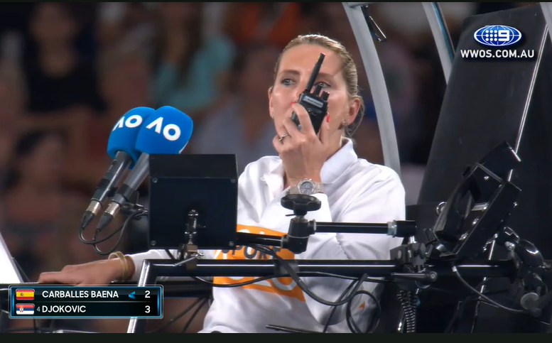 But the official didn't hear, forcing Djokovic to repeatedly say "hello" three times to get her attention.