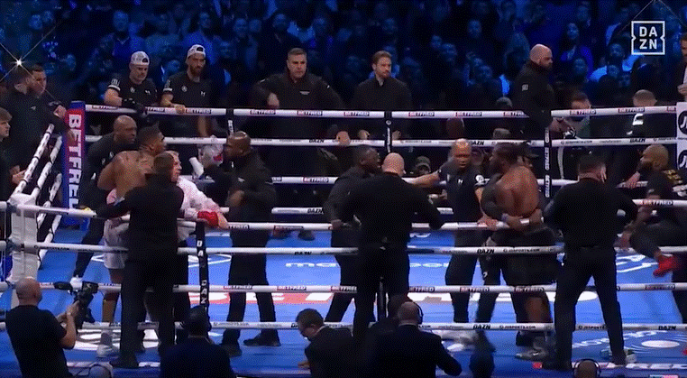 Joshua apologised for the fracas, referencing his meltdown following his rematch defeat by Oleksandr Usyk in August, saying: "Listen, last time I grabbed the mic it was a bit chaotic. So I'm calm, I appreciate every single person coming out this evening. Inside this squared circle, it's a different kind of energy in here so I apologise for anybody watching and seeing that type of stuff [at the end] because we're sportsmen.