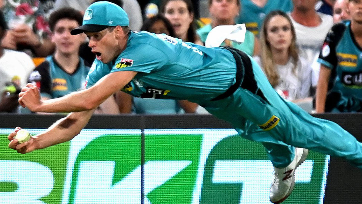 Brisbane Heat speedster Ben Laughlin has lodged a contender for catch of BBL history in tonight's elimination final against the Adelaide Strikers, pulling off a spectacular one-handed snag at full stretch in the outfield.