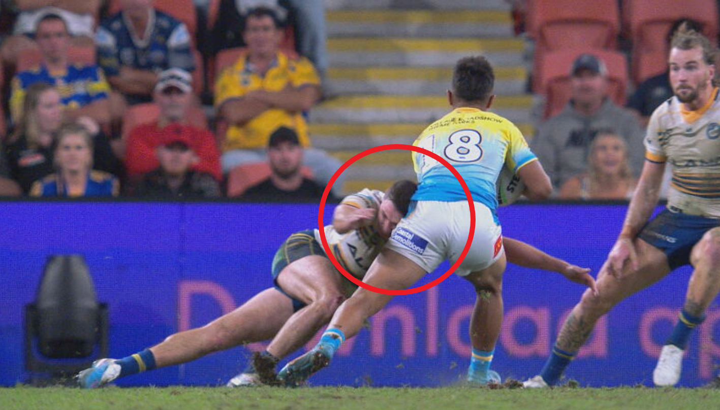 With just under ten minutes left in the 26-24 loss to the Gold Coast, Moses was taken from the field for a Head Injury Assessment (HIA) after his head was caught in the wrong position when tackling Keano Kini.
