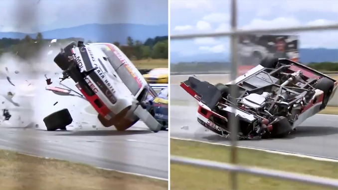 The son of two-time Bathurst 1000 winner Allan Grice was hit from behind after his Ford Mustang suddenly slowed due to a mechanical failure.