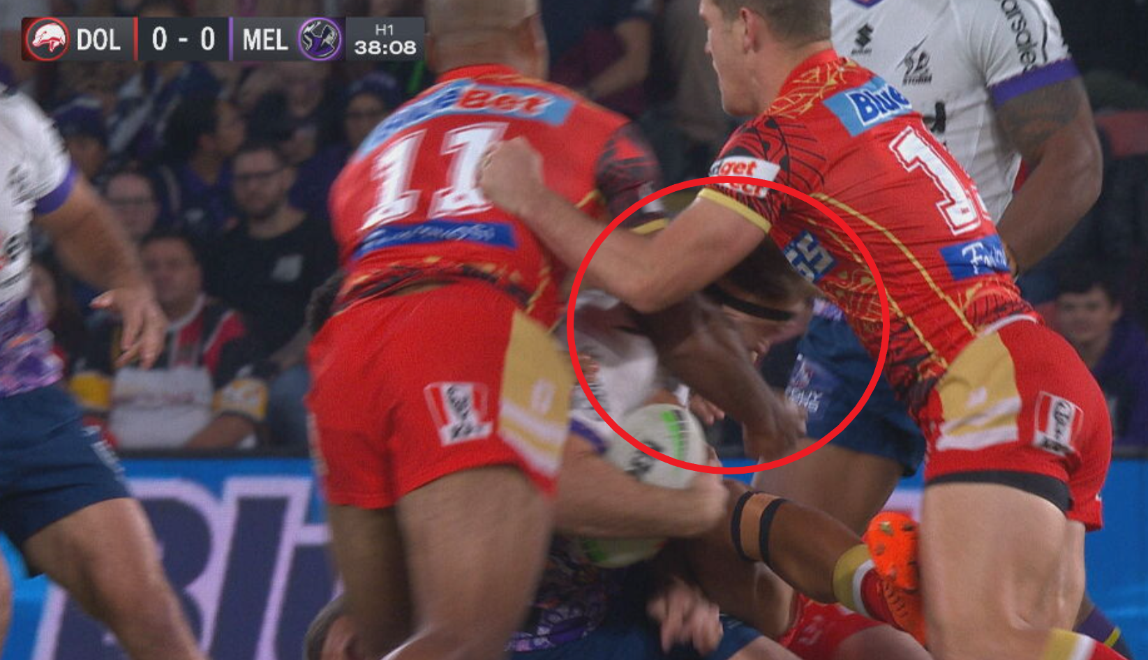 The incident then sparked a melee between both sides with the Storm scoring through winger Will Warbrick while the Dolphins were down to 12 men.