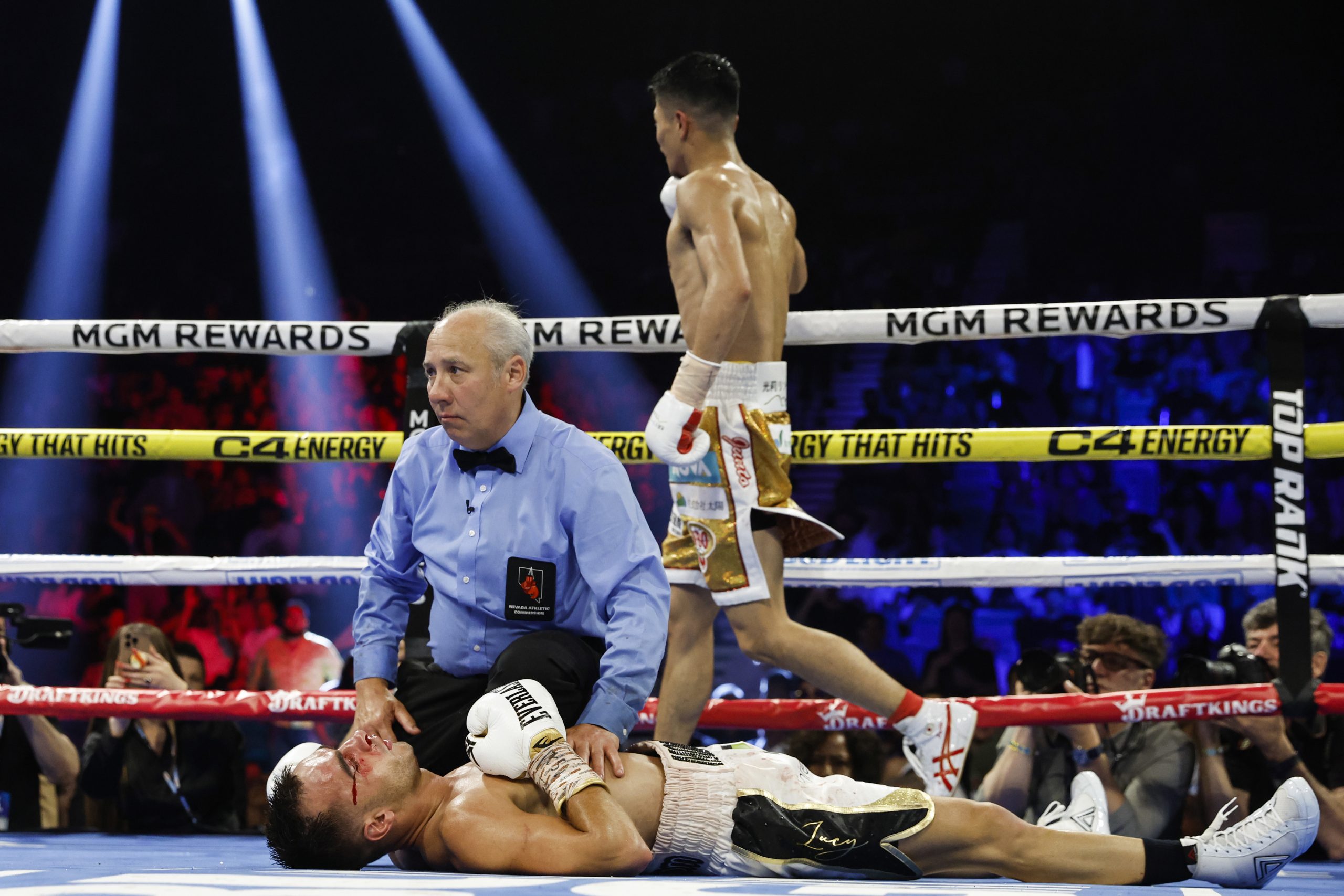 The official time of the stoppage was 2:42 of the 12th round on the Devin Haney-Vasiliy Lomachenko undercard at MGM Grand Garden Arena.