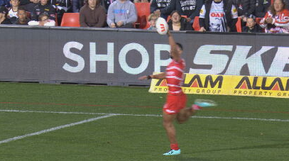 The incident in question occurred midway through the second half on Sunday night, when Dragons winger Mathew Feagai was ruled to have knocked the ball on after a Jack Cogger kick.