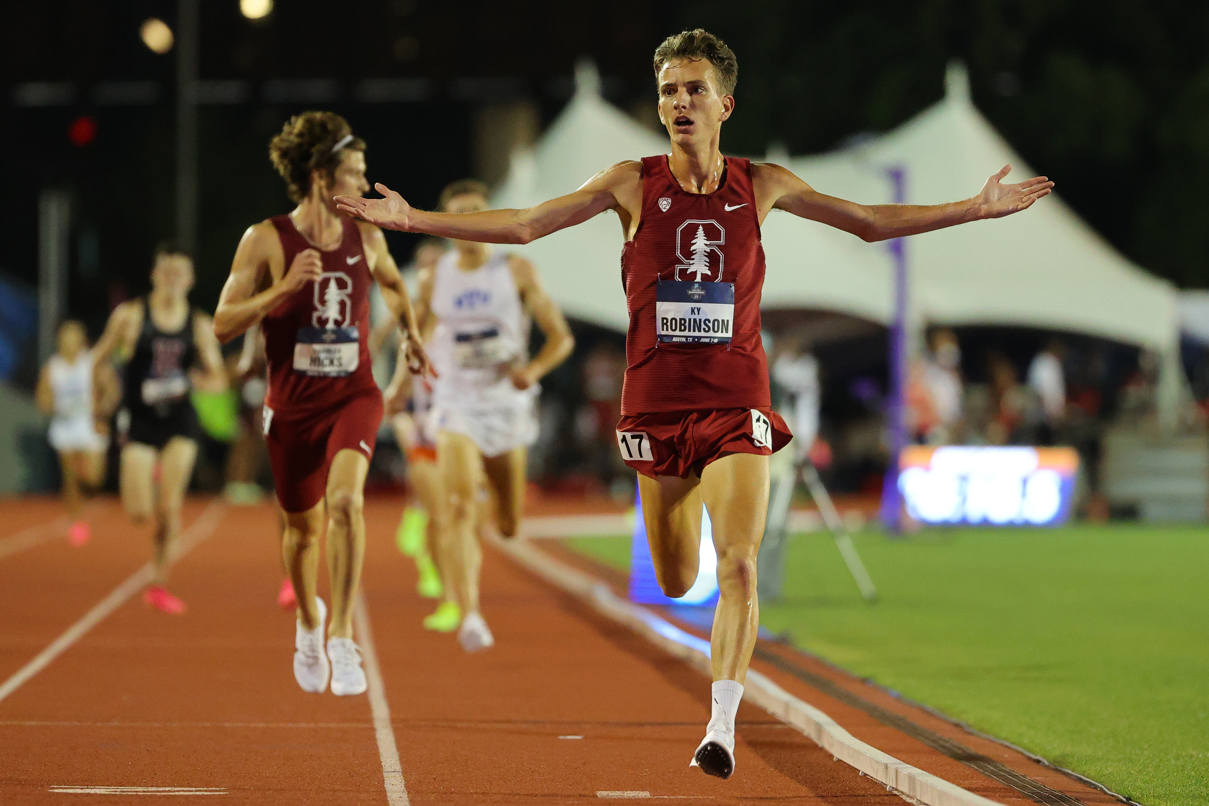 Running young gun Ky Robinson has become the first Australian male to win an NCAA title over 10,000 metres, executing a phenomenal surge with just over a lap remaining to clinch victory in his Stanford University singlet on Thursday (AEST).
