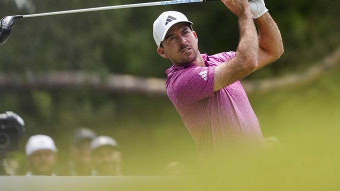 Northern Ireland’s Rory McIlroy was in a six-way tie for second as he looks for a third consecutive title at the men’s national golf championship.