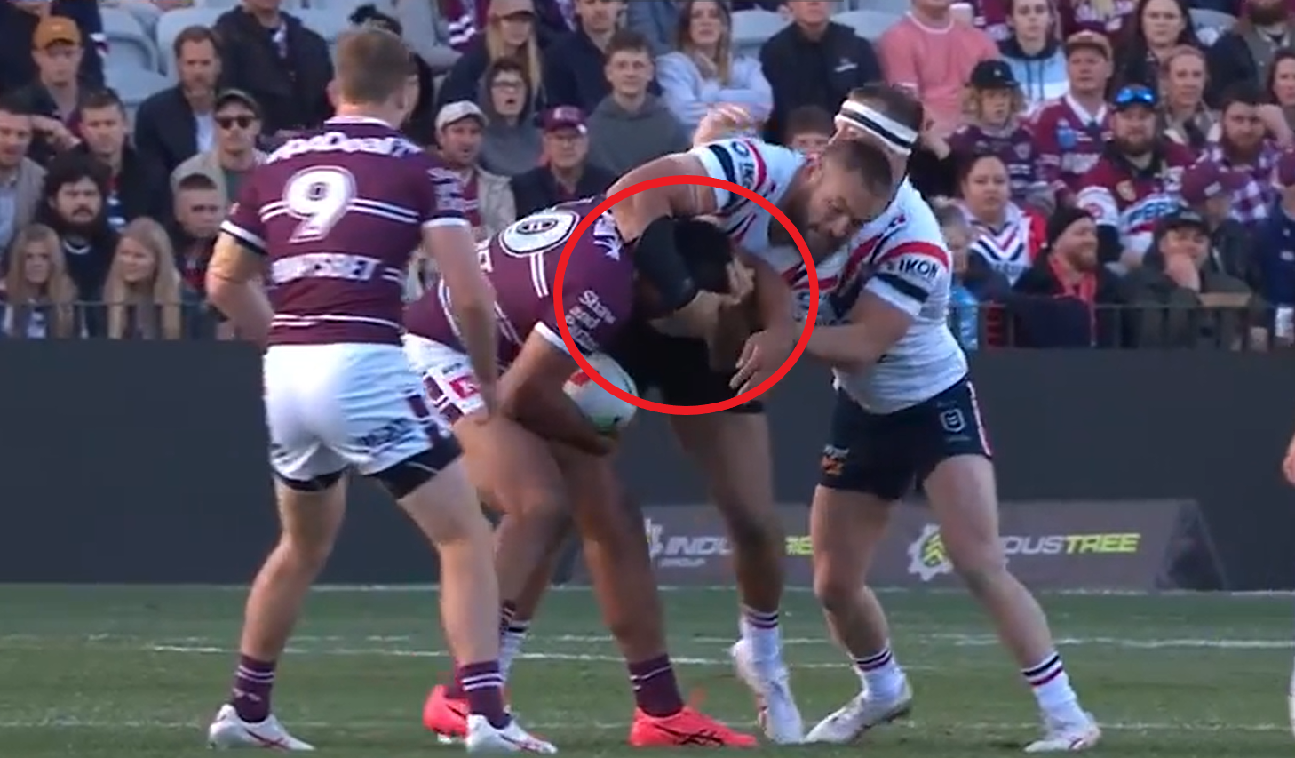The Roosters enforcer had his hands all over Sipley's face during a tackle in the first half that left the prop clutching at his eye and staying down.