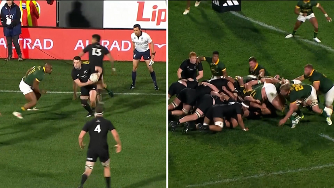 The All Blacks were irresistible in opening up a big lead against the Springboks on Saturday before withstanding a 'bomb squad' comeback in the second half and kicking late for a 35-20 win in Auckland.