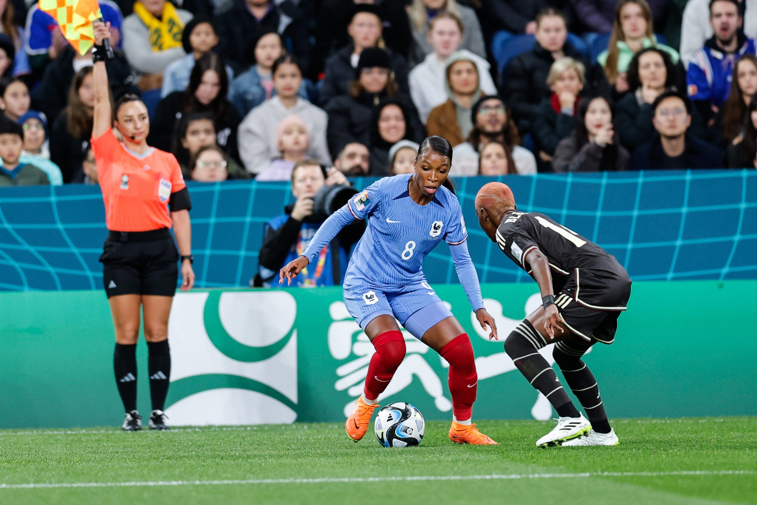 France did find some success out wide as fullbacks Maelle Lakrar and Sakina Karchaoui looked to overlap and overload the Jamaican fullbacks at every opportunity, but a lack of quality delivery led to young France and PSG striker Kadidiatou Diani feeding off scraps in the first half.