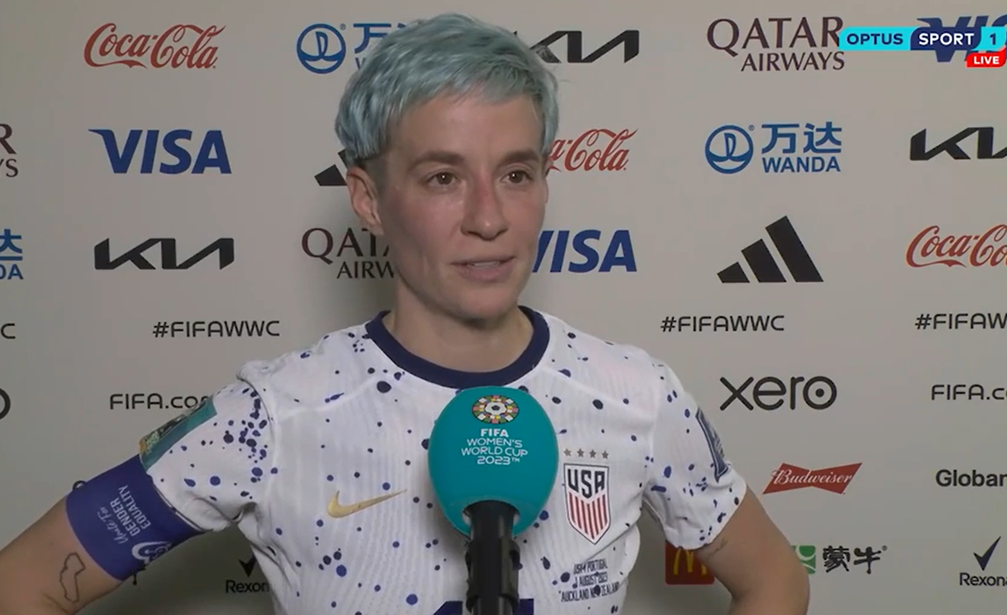 USA star Megan Rapinoe has been forced to correct a reporter in an awkward exchange after her side's 0-0 draw against Portugal on Tuesday night.
