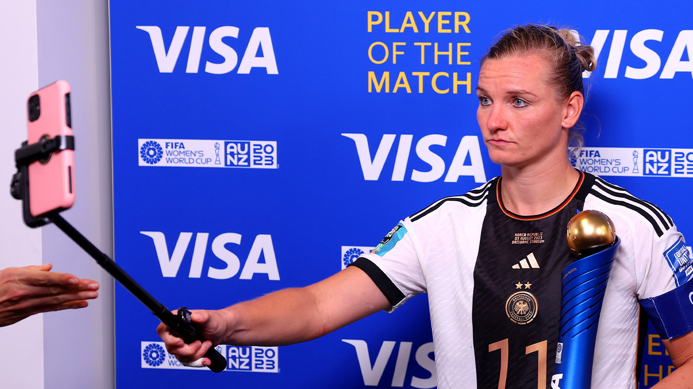 In the meantime, Germany's Popp had to pose for photos with the player of the match award, having been judged best afield after scoring her fourth goal of the campaign.