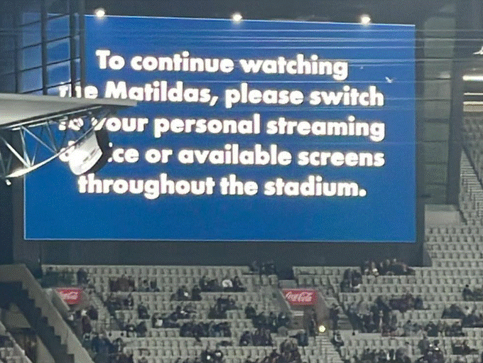 "To continue watching the Matildas, please switch to your personal streaming device or available screens throughout the stadium," the message read.