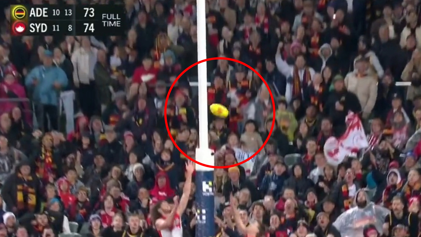 "The goal umpire's trying to tell us that hit the post. From that angle you might make a argument it's hit the back of the padding there, but when you go to the side-on angle it's a mile clear. He's just made a massive mistake.