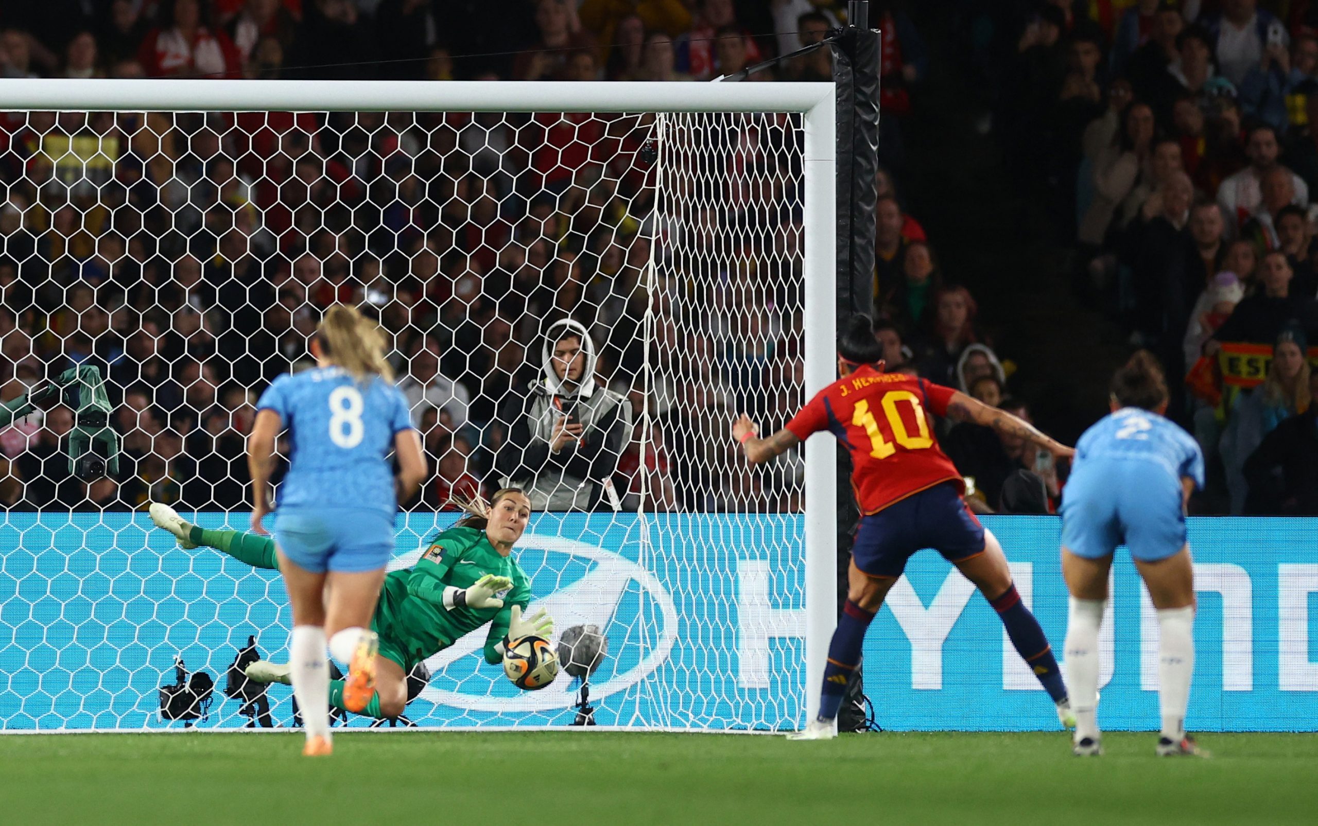 Jennifer Hermoso then stepped up but it was saved by Mary Earps, who had already started diving to her left before the ball was even struck.