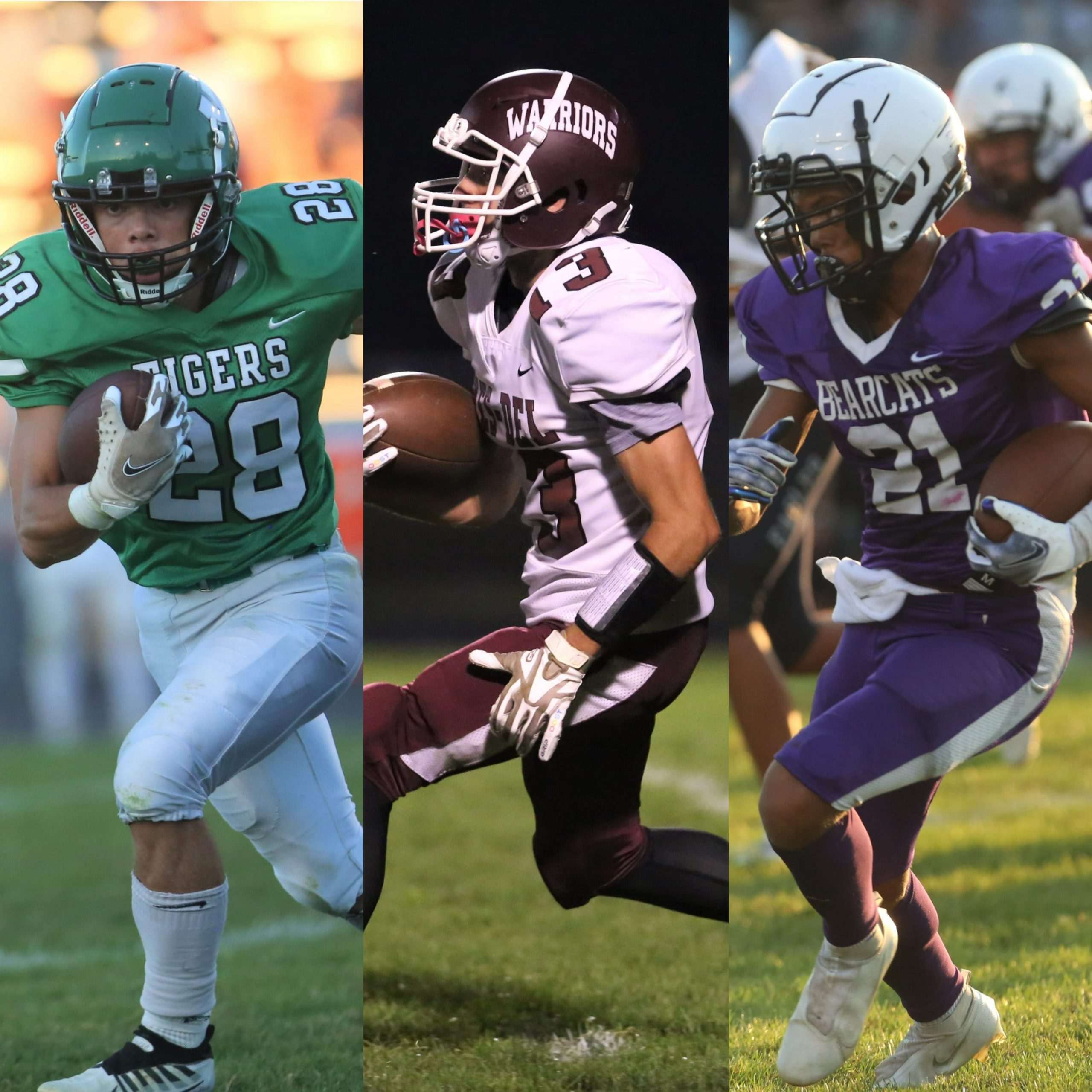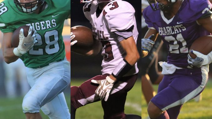 (From L to R): Yorktown’s Jalen Thomas, Wes-Del’s Trey Adams and Muncie Central’s Leo Boyd are among the top East Central Indiana high school football players to watch during the 2023 season.