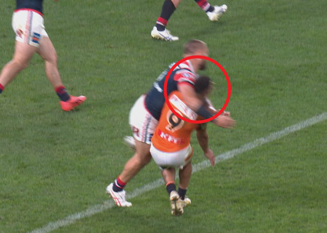 The Roosters enforcer was then involved in a melee with Tigers prop Stefano Utoikamanu with footage capturing him headbutting his opposing prop.
