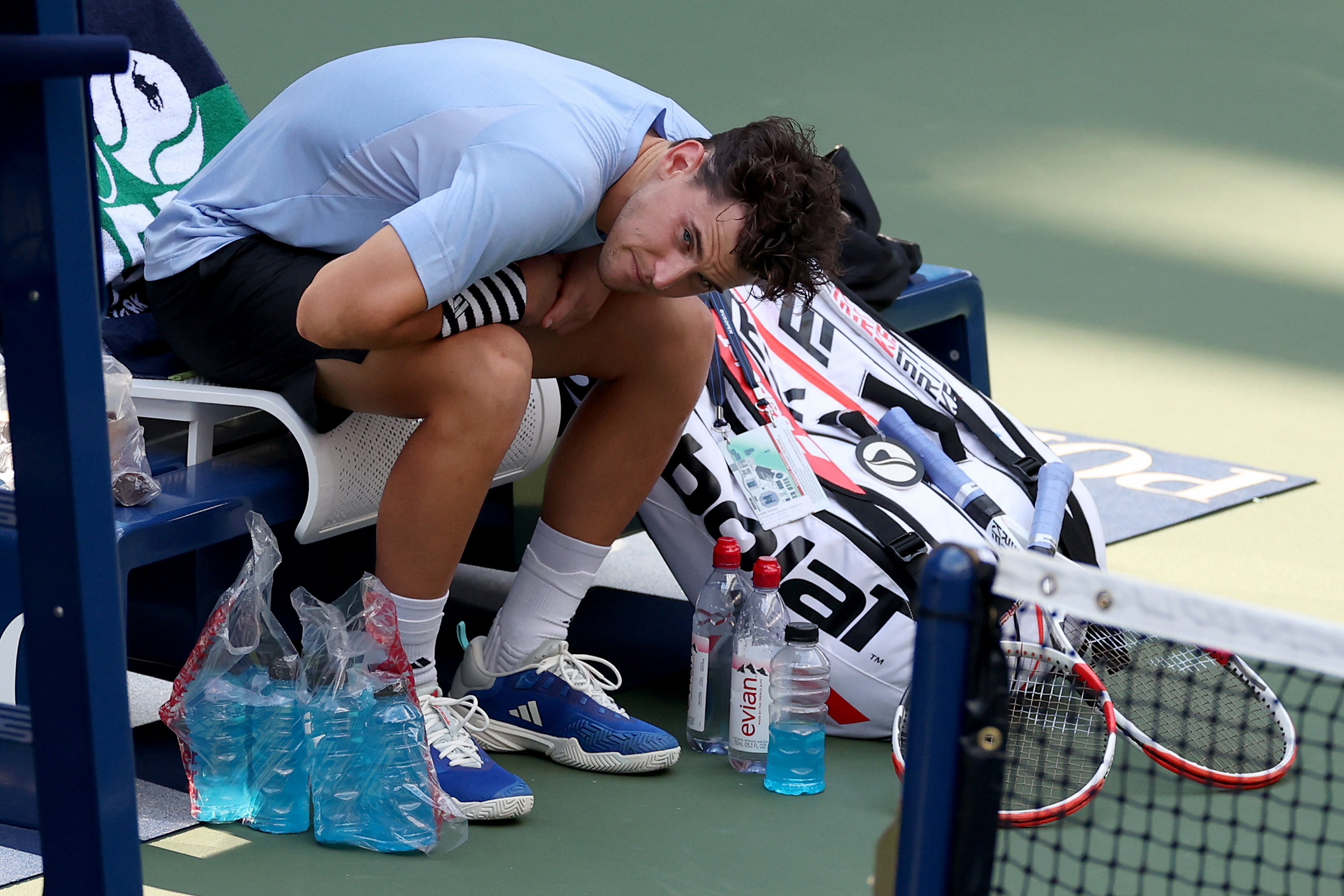 The world No.81 had vomited prior to the match, and was showing signs of discomfort between ends, having spoken to a medic. In the end Thiem pulled out of the clash, with Shelton up 7-6(1), 1-0.