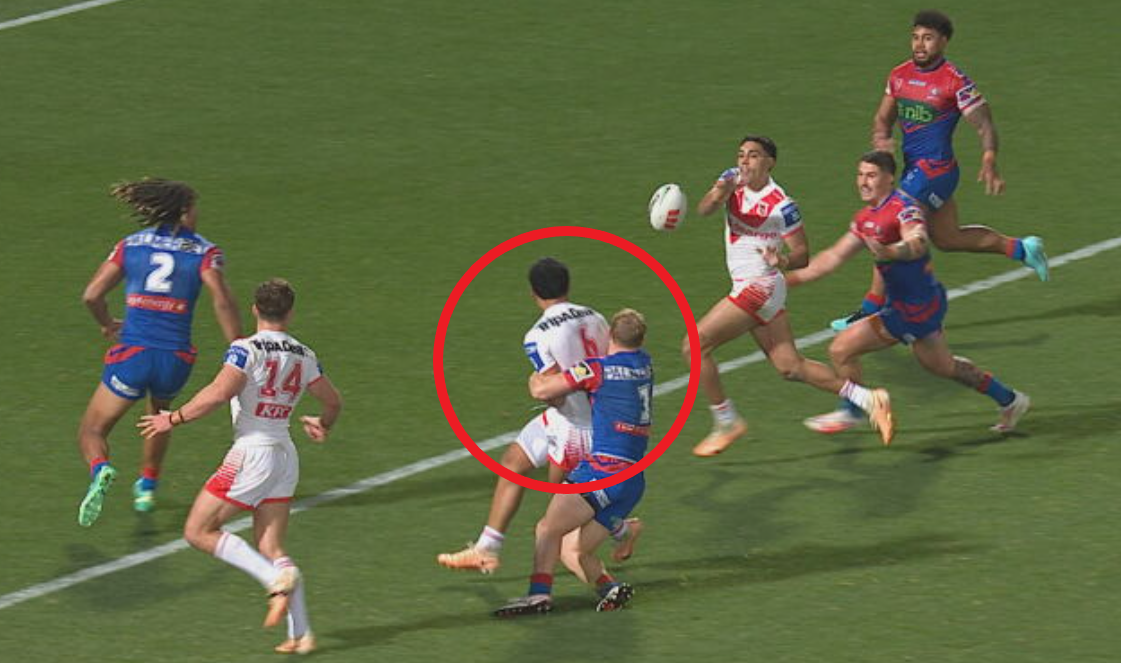 With the Knights up 22-12 late in the game against the Dragons, Miller was sent from the field after he was judged to have tackled Talatau Amone without the ball.