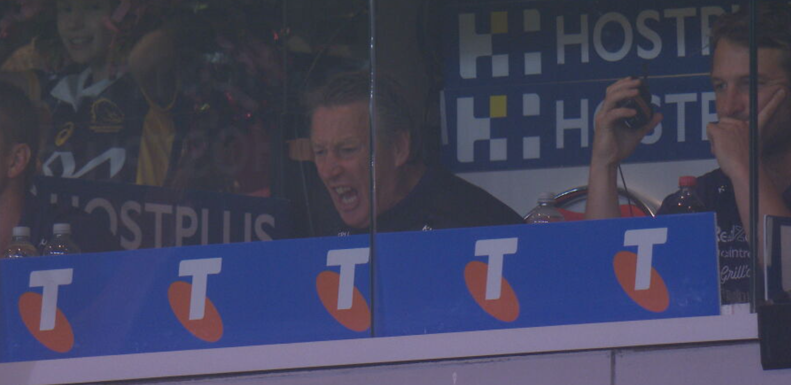 Footage of the Storm coaching box then showed Bellamy blowing up and trying to cover his mouth in what was an intense rant.