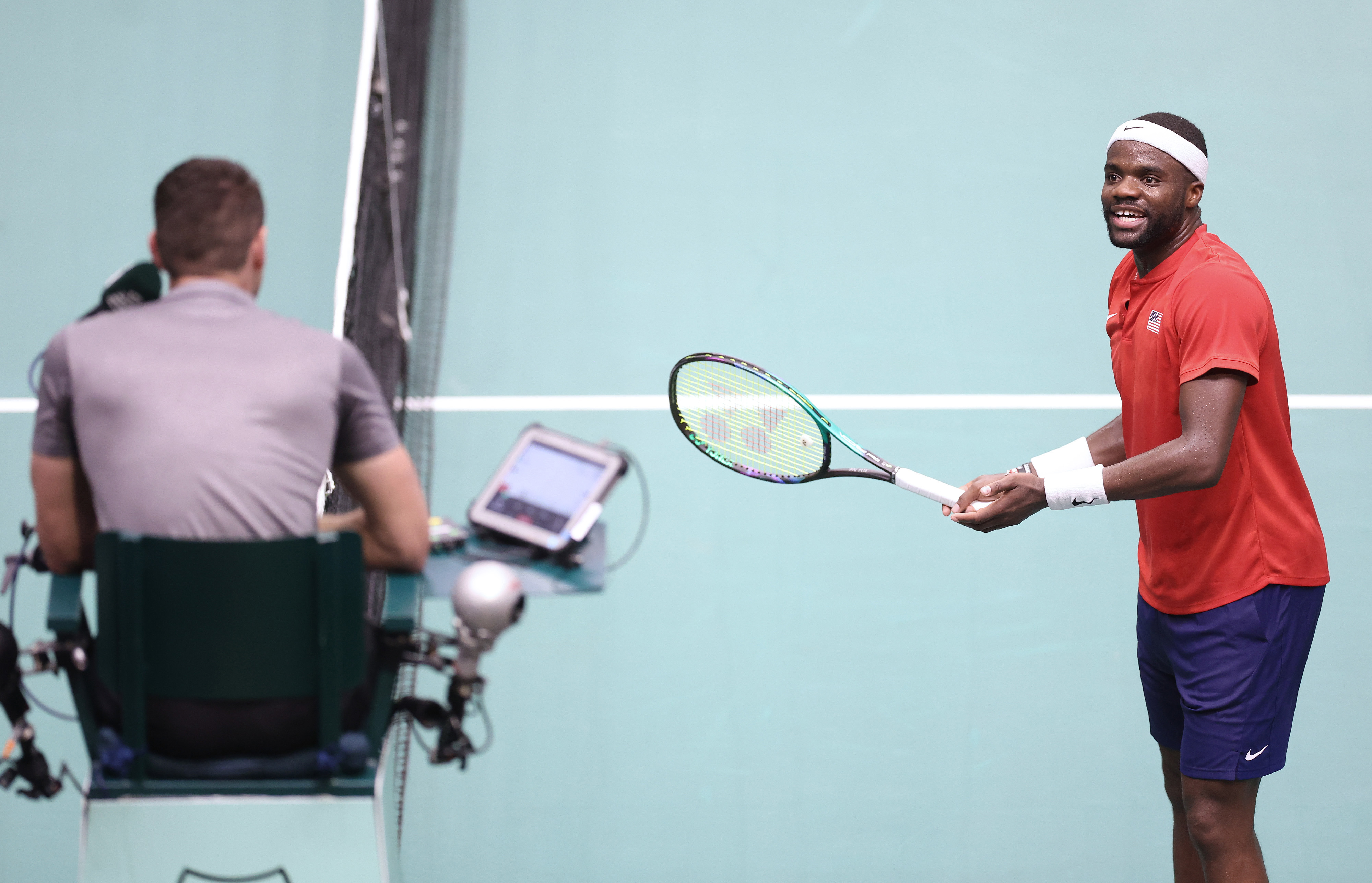 Tiafoe shook hands with Griekspoor and the Dutch captain then continued to argue his case to the chair to no avail.